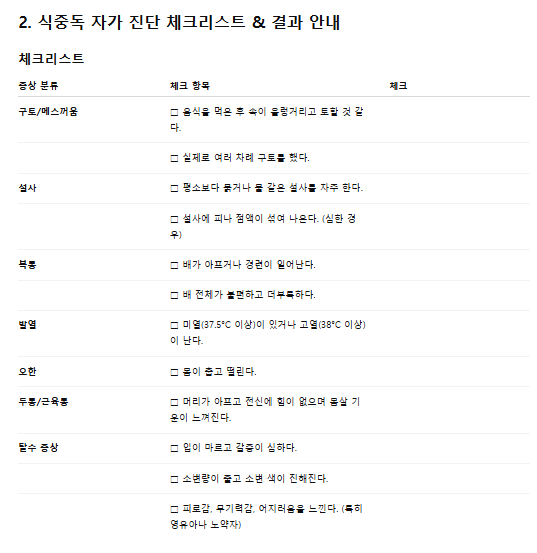 💡 체크리스트: 최근 외식·배달음식 섭취, 생수 아닌 얼음·물 음용, 가족 중 장염 증상자 발생 여부도 확인해보세요!